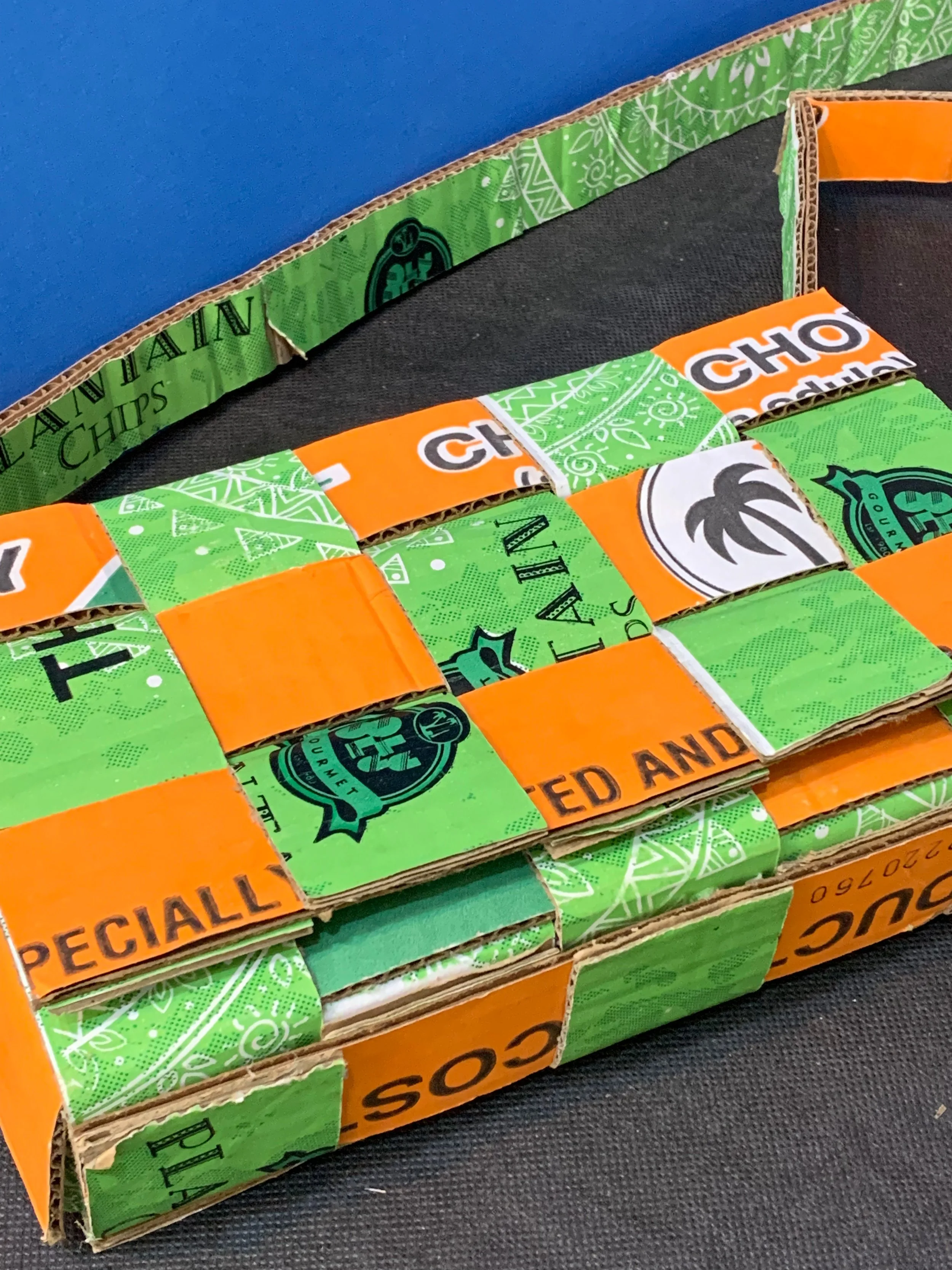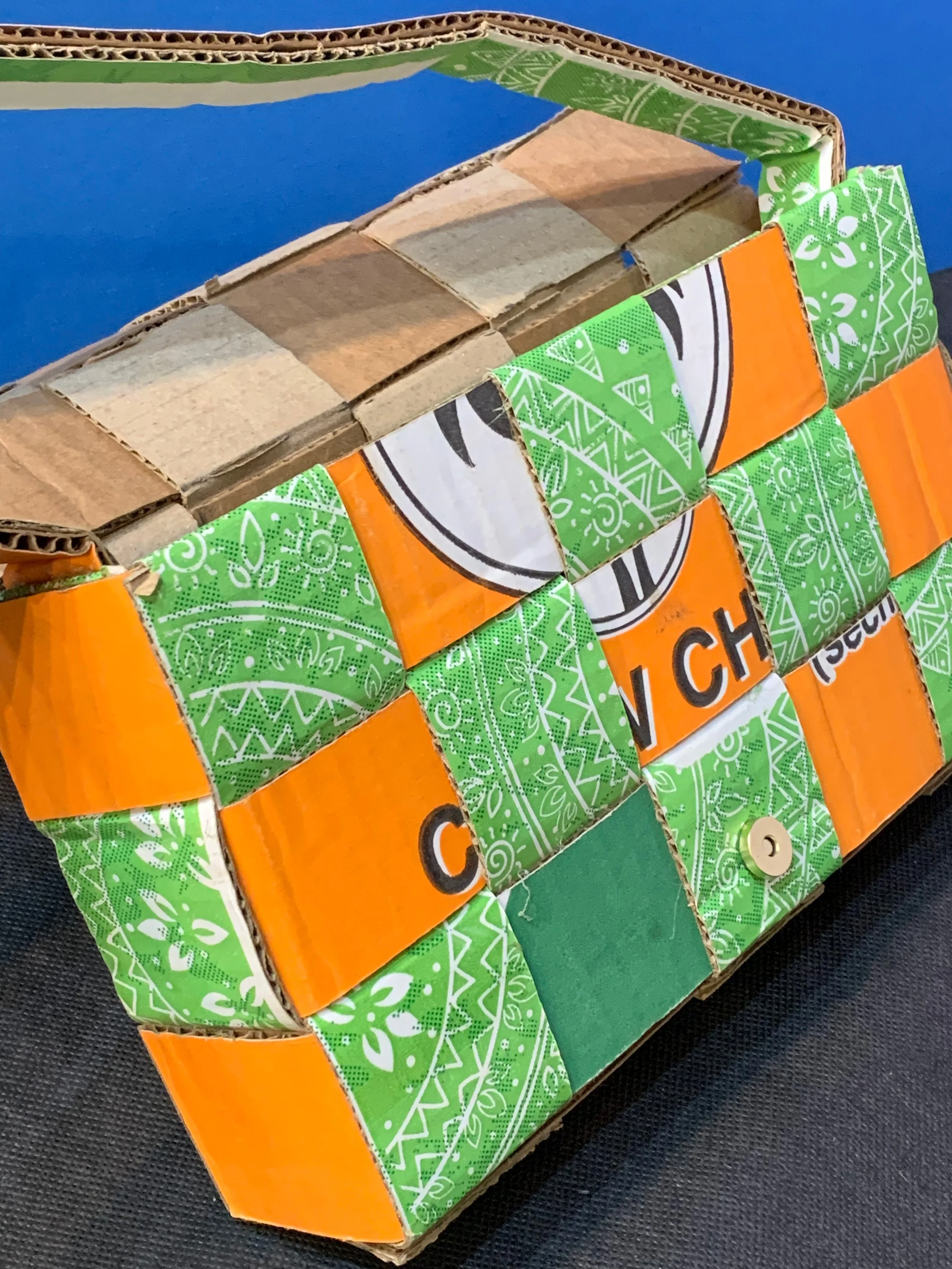A Bottega Venetia Cassette Intrecciato cross body in Plantain Crisps & Chow Chow cardboard.